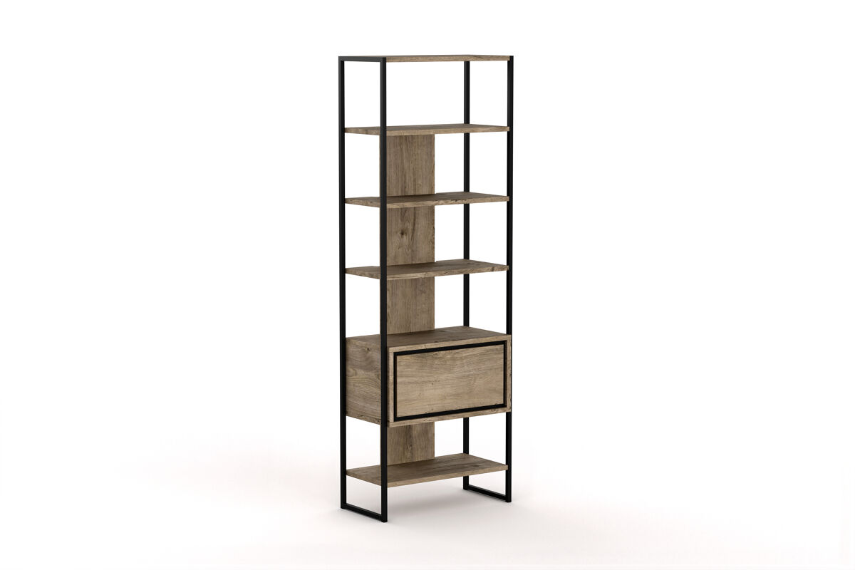 A estante HELSINKI é a solução perfeita para organizar e decorar a sua casa ao mesmo tempo! Com um design elegante e moderno, esta estante em melamina cor carvalho será o centro das atenções em qualquer divisão. Com uma porta e cinco prateleiras amplas, vai ter muito espaço para guardar os seus livros, revistas e alguns dos seus objetos favoritos. Pode combiná-la com outros artigos da gama HELSINKI e dar um toque rústico à sua sala.