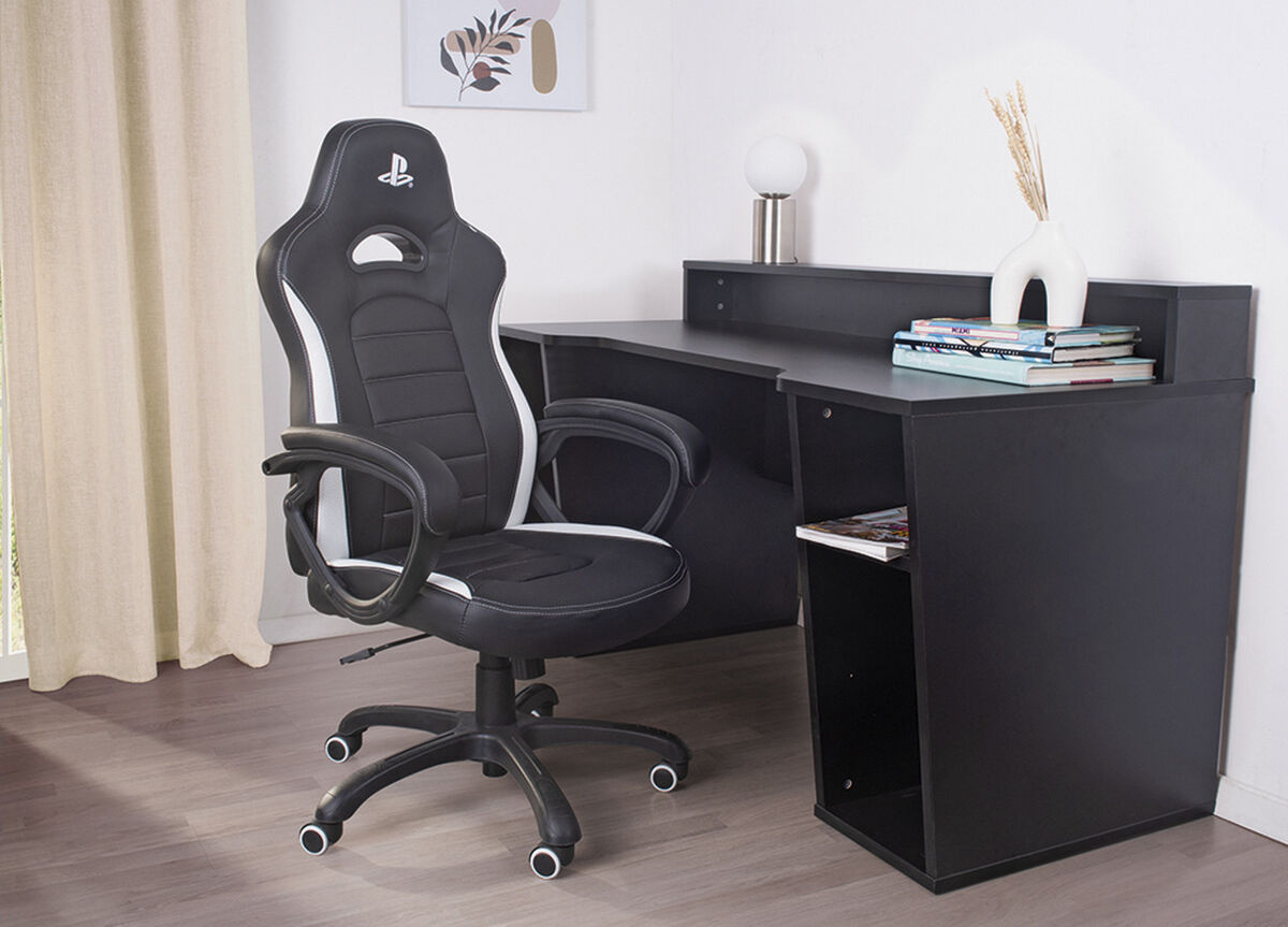 Cadeira gaming PLAY branca/preta, foi desenvolvida especificamente para acomodar todos os tipos de morfologia e oferecer conforto adaptado às sessões de jogos. Jogue confortavelmente Com a Cadeira gaming PLAY branca/preta oficialmente licenciada para a Playstation, podes ter a certeza de que podes jogar durante horas sem preocupações e ao mesmo tempo sentas-te confortavelmente graças ao seu acolchoamento extra espesso para que todo o teu corpo esteja confortavelmente em posição. Cadeira ajustável, podes reclinar-la até 12 graus, definir a resistência por si mesmo. Além disso, pode ajustar facilmente a altura utilizando a alavanca de regulação. Cadeira gaming PLAY branca/preta É recomendada para usuários com altura entre 140 cm e 180 cm e um peso máximo de 110 Kg.