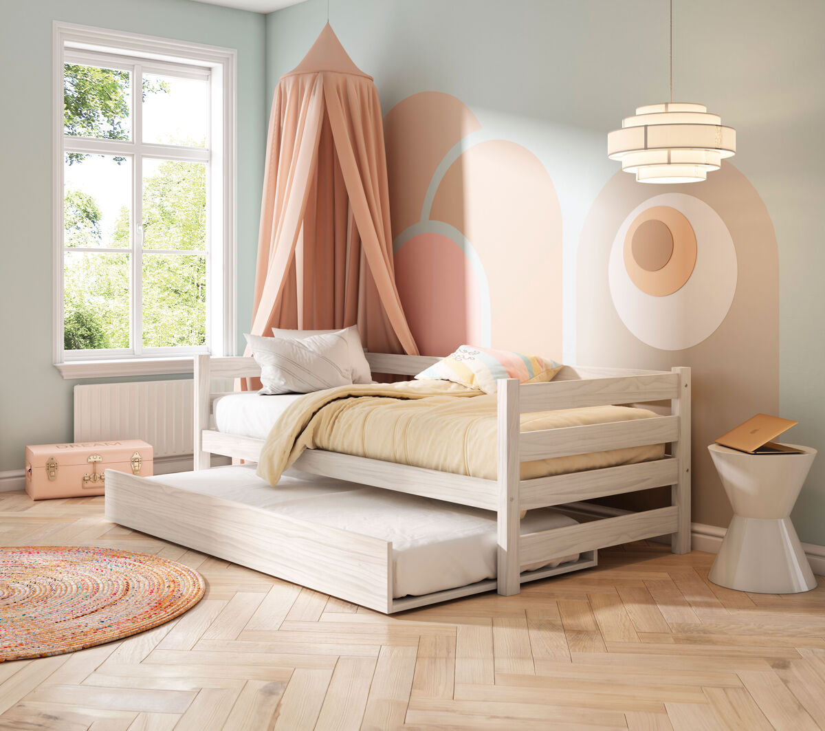 Dê mais estilo ao seu quarto com a Cama de rodízio EKO II dupla em madeira maciça branqueada de 90x190 cm. Esta cama combina funcionalidade e estética. Design moderno e adaptável a vários estilos de decoração. A madeira de pinho branqueada cria um ambiente mais luminoso, acolhedor e contemporâneo. Ideal para quartos duplos ou para quartos principais. A Cama EKO II dupla trará elegância e conforto para a sua vida. O seu design intemporal adapta-se a diferentes estilos decorativos e garante um ambiente harmonioso e relaxante. Transforme o seu quarto num local especial e acolhedor. Tenha uma experiência de descanso única com a Cama EKO II dupla em madeira de pinho branqueada de 90x190 cm!