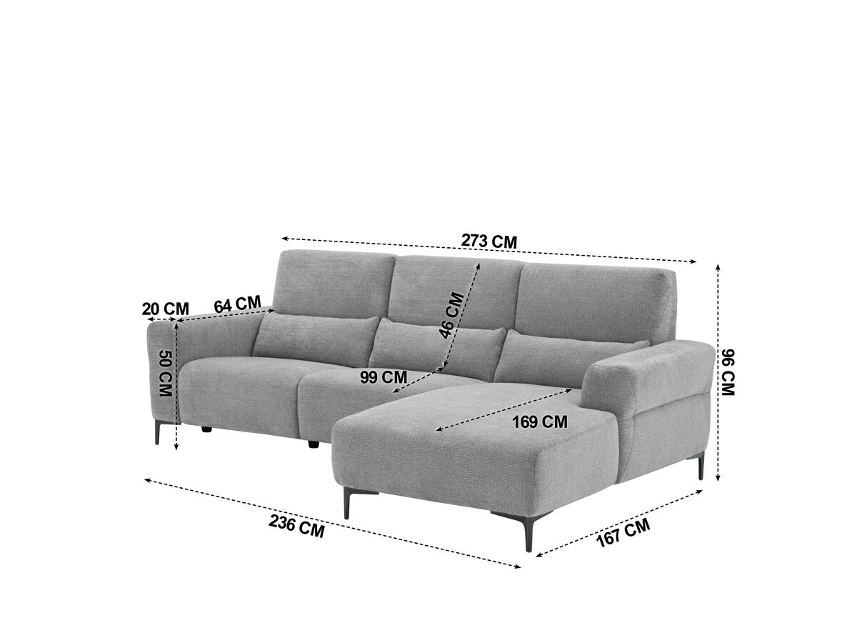 Procura oferecer o máximo conforto e estilo à sua casa? Apresentamos LEANIS Chaise Longue Relax Elétrica Direita Cinza! Com uma estrutura robusta em madeira e revestimento em tecido de alta qualidade, esta chaise longue é a escolha perfeita para relaxar após um longo dia de trabalho. Medindo 273 cm de largura, 96 cm de altura e 167 cm de profundidade, esta chaise longue oferece um amplo espaço para se esticar confortavelmente. Além disso, a sua função elétrica permite ajustar facilmente a posição do encosto e dos apoios para os pés, para encontrar a postura perfeita. Relaxe sem esforço!