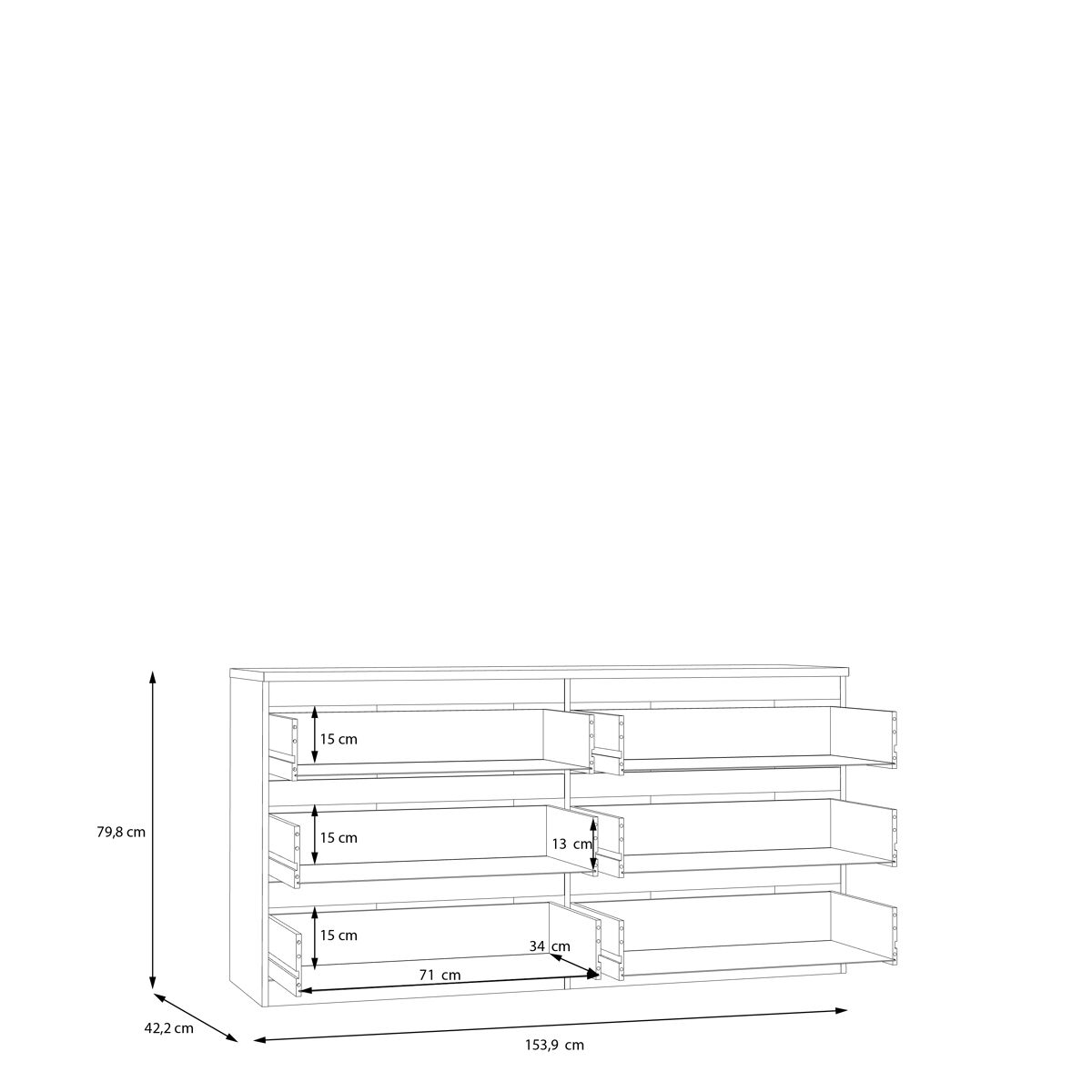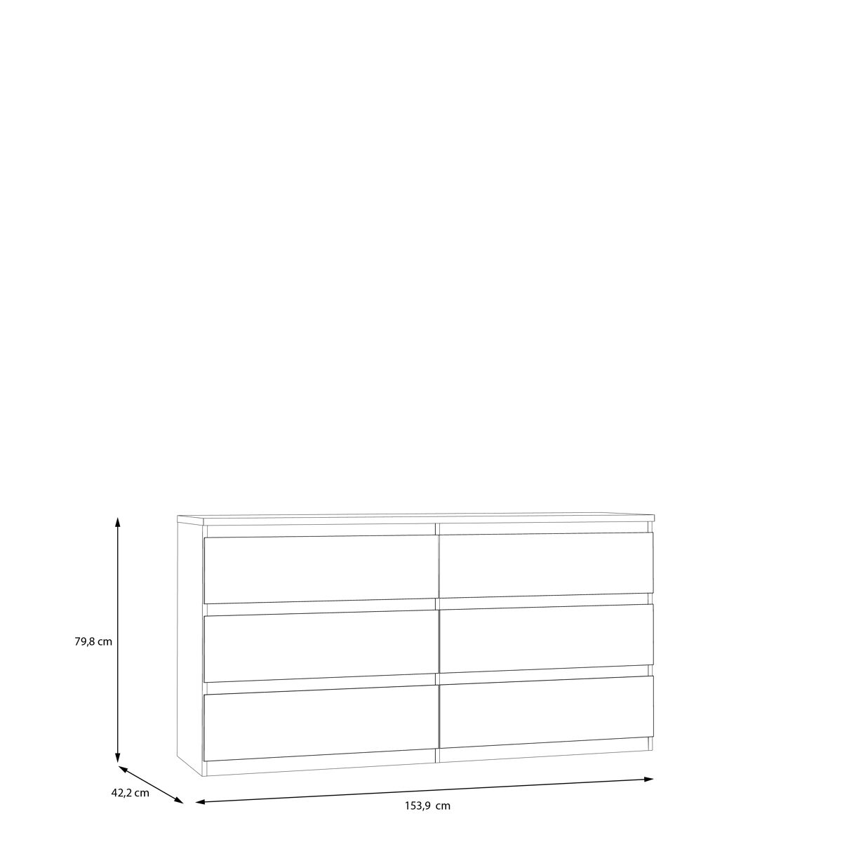 A cômoda NEVADA II em tom cinza combina elegância e funcionalidade em sua casa. Oferece seis gavetas grandes para uma organização ideal de roupas e acessórios. Seu acabamento em carvalho traz aconchego e um toque rústico que se integra perfeitamente em qualquer decoração, do clássico ao moderno. Construído com materiais de alta qualidade, promete durabilidade e resistência. Ideal para qualquer espaço, esta cómoda não é apenas prática, mas também um elemento decorativo.