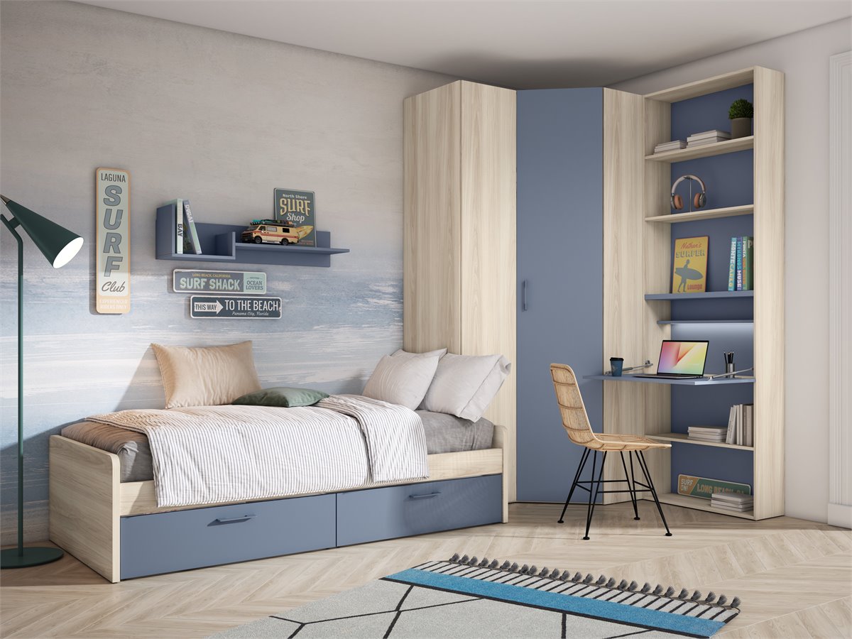 • Cama de rodízio essencial com 2 gavetas com rodas 90x190 cm