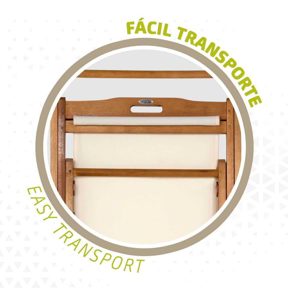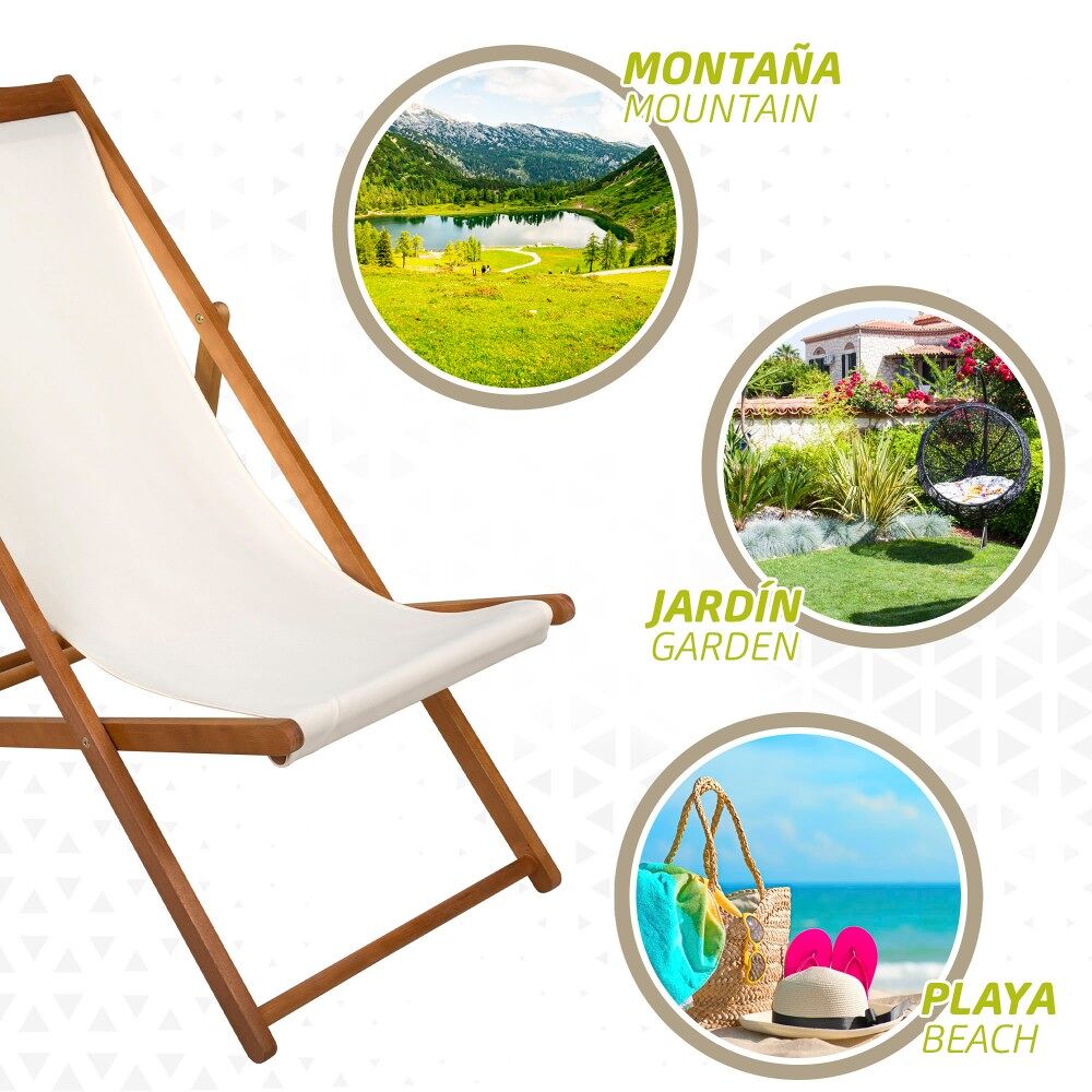 Espreguiçadeira de jardim Aktive Garden em madeira de acácia de origem sustentável e assento de poliéster cru. Estrutura forte e estável, dobra-se facilmente para armazenamento ou transporte confortável. Encosto ajustável em 3 alturas. Mede 59cm de largura x 106cm de comprimento e 94cm de altura. Ideal para ambientes internos e externos Design e materiais elegantes para fácil limpeza e manutenção.