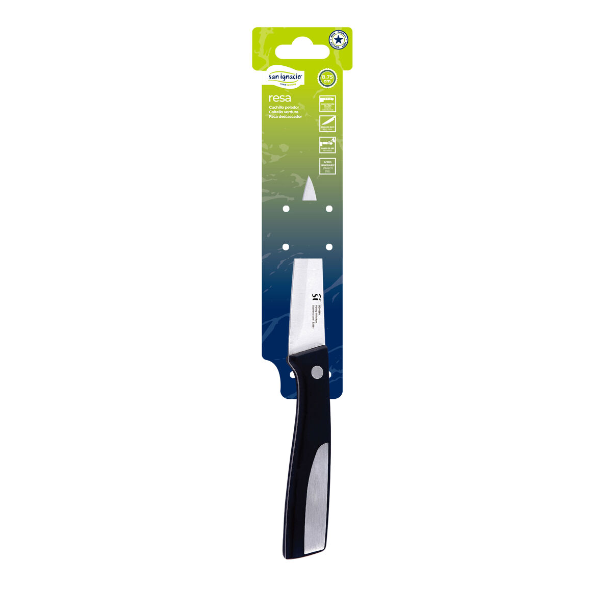 A faca de descascar SAN IGNACIO de 8,75 cm é a aliada perfeito para desascar com precisão. A sua lâmina afiada e compacta foi concebida para descascar frutas e legumes com facilidade e controlo. O cabo ergonómico oferece uma aderência confortável e segura, reduzindo a fadiga durante uma utilização prolongada. Fabricada com materiais de alta qualidade, com material durável e resistente. Eleve a sua experiência culinária com esta indispensável faca de descascar SAN IGNACIO.