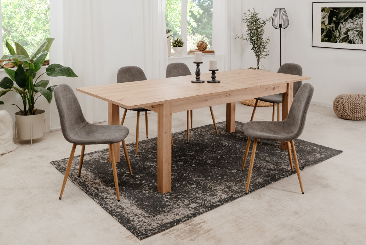 Anda a pesquisar por uma mesa de jantar que responda às suas necessidades? Não procure mais! A mesa de jantar BERGER é a opção perfeita para si. Com um design retangular e extensível, vai poder desfrutar de jantares íntimos ou reuniões familiares sem se preocupar com o espaço. O tampo em aglomerado de partículas em carvalho confere um toque elegante e moderno a qualquer ambiente. E o melhor de tudo é que as suas medidas são 160/215x75x90 cm, ideais para espaços pequenos ou grandes!