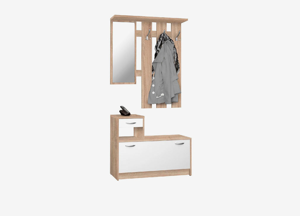 Agarre todas as oportunidades para causar uma boa primeira impressão. O móvel de entrada HELA com espelho é a primeira coisa que todos verão assim que entrarem na sua casa. Possui 1 gaveta, 1 módulo de sapateira com espaço para 8 pares de sapatos, 1 orifício e um bengaleiro para pendurar casacos. Espelho integrado. Muito prático para uso diário. Não deixe escapar o complemento perfeito para o seu hall de entrada.