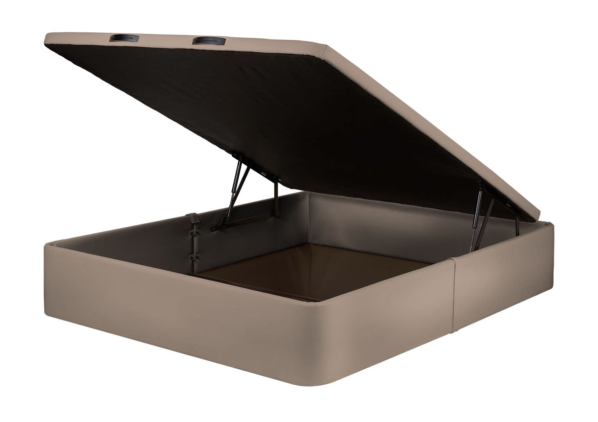 Sommier Living com estrutura em aço altamente resistente, medida 160x200cm. tecido semi pele na cor Castanho Molaflex, com tampo forrado ao centro em tecido 3D para ótima ventilação e arejamento. Fácil abertura graças ao sistema de pistões reforçados accionados a gás de alta qualidade impedindo a fricção com a cabeceira. Melhor resistência e resposta ao movimento lateral. Altamente resistente devido à sua estrutura de aço e aos seus 3 travessões verticais reforçados (3 x 3 cm). Tampo duplo na medida 180x200cm.